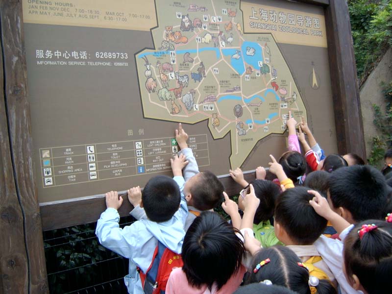 动物是人类的朋友,我们和动物互相依存,共同生活在这个地球上。保护动物是一个全社会都应该参与的问题。环保,应该从娃娃抓起,从自我做起。基于此,我班设计并组织了“在动物园里”的主题教育活动。旨在从小就培养孩子的环保意识,激发幼儿关心、爱护动物的情感。 我们围绕秋游去动物园的的话题,让幼儿讨论你最喜欢的动物,你最想看什么动物?从图中选择数种大家都想看的动物,说说它们的名称。从动物园导游图引发幼儿观察动物的兴趣。幼儿讨论热烈,每说到一种动物,幼儿就出示玩具的动物形象,最喜欢的动物是孩子们的属相马和蛇,这是孩子的真正意愿。接着讨论最想看的动物引导幼儿分组讨论,孩子们尝试用商量的口吻讨论,经过多次的协商最后达到共识:有大象、长颈鹿、孔雀、猴子、河马、老虎是幼儿最想看的动物并用图片的形式表示。大家争先恐后的说要先看的动物。正在这时孙增辉小朋友看到动物园的导游图说:“长颈鹿、河马、大象这些动物离得都很近,猴子、老虎和这些动物不在一起,顺着孩子们观察到的现象,引导孩子观察动物园的导游图的动物分布,我们从大门进去走的路线,动物馆的先后顺序,黄菘岳小朋友说:“先走到的地方就先看”。孩子们都同意了他的看法。参观动物园时走一条比较合适的路线。接着孩子们讨论我们怎样爱护动物?幼儿们在讨论中说到:不能对动物扔垃圾和石头,家里饲养的动物每天要喂养它,不能让它饿死,看到别人不爱护动物要劝阻等等,培养幼儿对动物的情感和探索的兴趣。秋游前的讨论会让幼儿充分发挥了自主性。 10月26日我们田林四幼中班根据孩子们的兴趣点游玩了上海动物园,在活动中,中三班的小朋友由于对去动物园的目的明确,因此在游玩中,孩子们对动物的情感激发出来了,当走到长颈鹿“海滨”的标本前孩子们了解到它是吃了人们扔的塑料袋不幸死亡的事情后,一声叹息觉得它太可惜了。在观看大象表演的同时孩子们遵守规则,在工作人员的引导下把食物喂给大象吃。看着动物园的警示牌,知道该怎么做,而不该怎么做。 通过与动物的近距离的接触,观赏了动物的趣事,在欢声笑语中体会到动物给我们带来了欢乐,动物是我们的朋友,大家都要来关心爱护动物的成长。