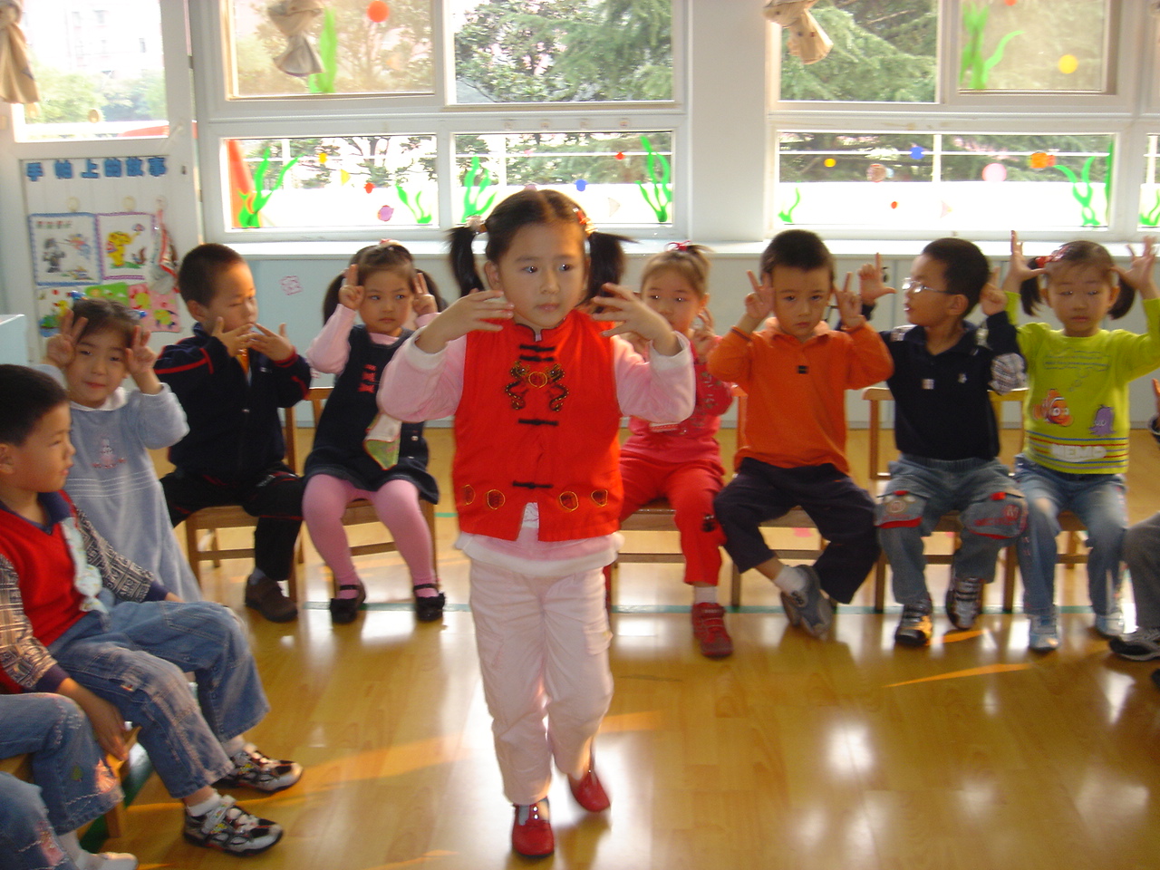 | “点名”活动成为我们每天常常进行的活动之一。但每天同样的点名步骤不仅让孩子们产生视觉听觉的疲劳也让老师产生精神上的疲劳,如何让“点名”活动生动起来。这学期我们贝贝园小一班尝试了新型的点名形式,那就是“点名活动”与主题活动相联系,与幼儿的兴趣相连,让孩子们在这种点滴的活动中发展孩子的语言能力。在“小兔乖乖”的主题活动的点名中,孩子们成为了一只可爱的小兔子,蹦蹦跳跳的上台与大家打招呼;在“学本领”主题活动的点名时,孩子们变成了自己喜欢动物的样子,有的做老虎,有的做兔子,还会向大家介绍“我是一只大狮子,或我喜欢**”;在“苹果橘子”主题活动的点名时,孩子们会告诉大家“自己喜欢的水果”;在“小司机”的主题活动的点名时,孩子们又开起了自己喜欢的车辆的名称;……。有时,点名活动与孩子的生活经验出发,说说自己住在什么地方;说说自己最快乐的事等等。总之,枯燥的点名活动已经别有趣的点名活动取代了,孩子们在点名时不是单纯的说“我来了”“到”之类的词,而是用一句话来说,来表达。 老师要做个有心人,在一日活动的环节中,抓住生活中可利用的时机,有意识的为孩子创设展示自己的舞台,让他们在开开心心的活动中得到许多。 |