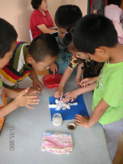 另外在活动的同时,我们带着幼儿一起去感触大自然的神奇,倾听大自然的语言,分享大自然的美妙,体验大自然的魅力,生活在绚丽多彩的大自然使孩子们感到新奇:“天上怎么会下雨?”“风是从哪里来的?”“云为什么会有各种形状?”孩子们带来了图片和文字的资料,在区域活动中孩子们通过讨论、交流,动手操作等形式激发了孩子们热爱和探索大自然的兴趣,在他们幼小的心灵中埋下智慧的种子。